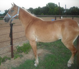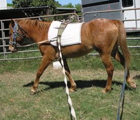 Dec. 23, 2010 - "I know it�s only been a couple days, but he is doing great here! Got the hind feet up and cleaned. He should be good to go when the farrier comes on Monday. He was so cooperative and quiet today when I was lunging him, adding weights and floppy things to the saddle, that I decided to put my 10 year old on him. He didn�t care. Walked him around and he was really quiet and relaxed. His training should come along nicely."